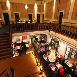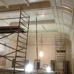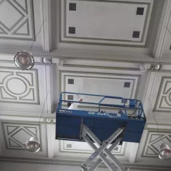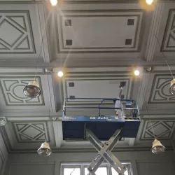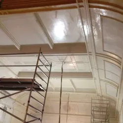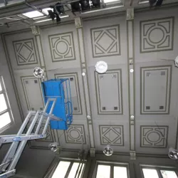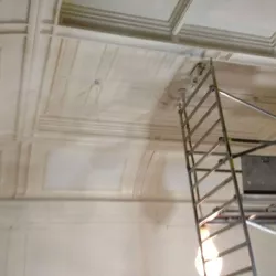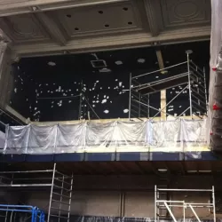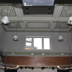 De Balie, gelegen aan het Leidseplein, is een icoon in Amsterdam. Recent hebben wij de renovatie voltooid van de Grote Zaal, Kleine Zaal, Bioscoop en het restaurant met foyer. Ondanks de strakke planning van maximaal één week per zaal, waarbij De Balie open bleef voor het publiek, hebben wij alle werkzaamheden nauwkeurig uitgevoerd. Na de nodige reparaties hebben we de wanden en plafonds zorgvuldig gespoten, terwijl de sierlijsten op de plafonds zijn afgewerkt met een subtiel contrasterende kleur, wat de ruimtes een elegante uitstraling geeft.