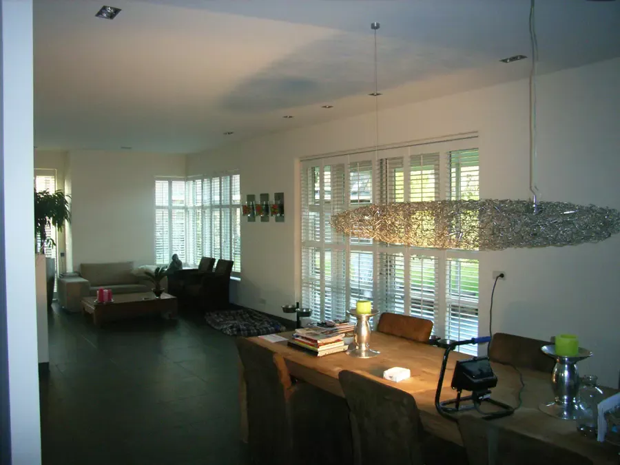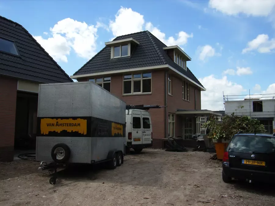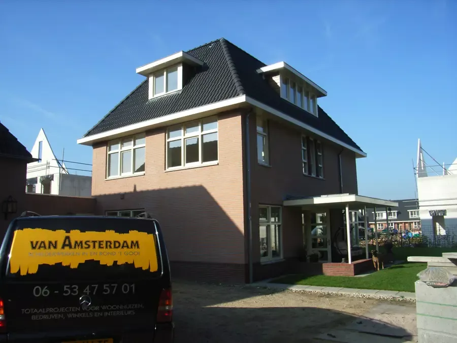 In Kortehoef is een volledig nieuwe wijk ontwikkeld, en het grootste huis hiervan hebben wij vanaf de bouw tot in de puntjes afgewerkt. Zowel binnen als buiten hebben we al het houtwerk in hoogglans geschilderd en de wanden en plafonds voorzien van spuitwerk met afneembare matte verf. Drie jaar later hebben we het gehele pand zorgvuldig geïnspecteerd en bijgewerkt. Na nog eens drie jaar hebben we alles opnieuw geschilderd om de kwaliteit en uitstraling te waarborgen.